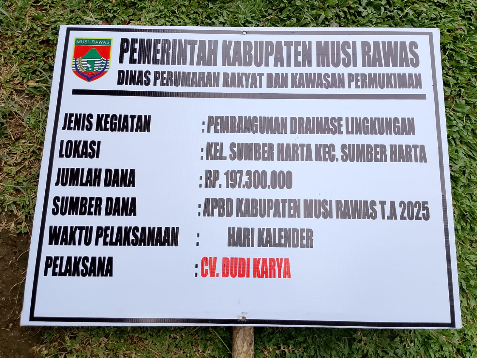 Musi Rawas,Linggaufakta,– Proyek pembangunan drainase Dilingkungan Kelurahan Sumber Harta, Kabupaten Musi Rawas, Baru baru ini Hingga mendadak menjadi Perbincangan publik Hingga memicu amarah warga Setempat . Proyek Tersebut Yang dibiayai Dana APBD Kabupaten Musi Rawas tahun 2025