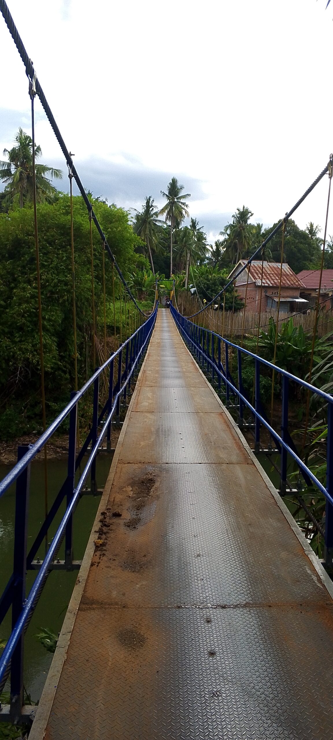 Warga Taba Pingin, yang tidak ingin disebutkan namanya, mengatakan bahwa jembatan gantung tersebut sangat tidak aman untuk dilintasi. “Sempat saya hampir jatuh karena ban motor saya pecah akibat terkena baut yang timbul dari pelat lantai jembatan gantung,” katanya.