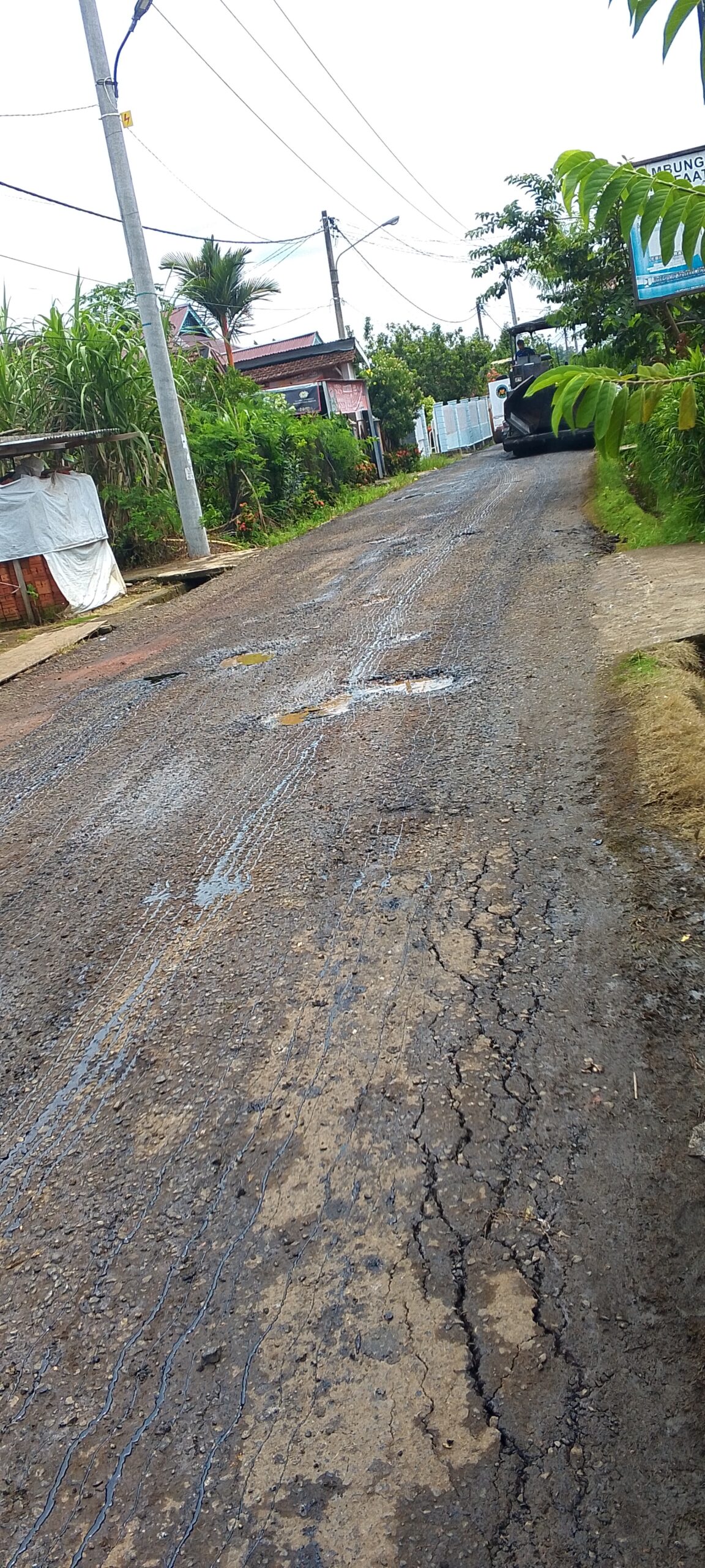 Setelah di aspal jalan tersebut terlihat bergelombang,dan pori -pori Jalan Sangat kasar diakibatkan kepanasan aspal kurang dari 99 Drajat ,abu Batu ataupun pasir sangat minim sehingga terlihat kasar,akan mengandung genangan air saat hujan turun pada jalan,”