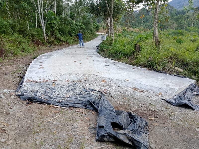 Dari hasil pantauan awak media, plastik pelindung hanya dipasang di kiri dan kanan jalan, bukan di seluruh area. Pembersihan lahan juga tidak dilakukan dengan baik, sehingga rumput liar ikut tercor di jalan. “Rumput yang masih menghijau dan lebat ikut serta dijadikan bahan pengecoran,” tambah warga tersebut.